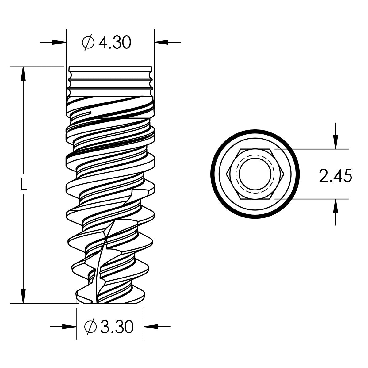 Our Dentlot Spiral Internal Hex Implants feature an internal hex connection, which is one of the more popular and well-known connections on the market, and is available in six different diameters, all of which have the same platform (RP 3.5) and hex size. The Dentlot Spiral Internal Hex Implant line is designed for use with Zimmer®, BioHorizons®, Alpha Bio®, Implant Direct® (Legacy), MIS®, and Adin® implants, plus many more.