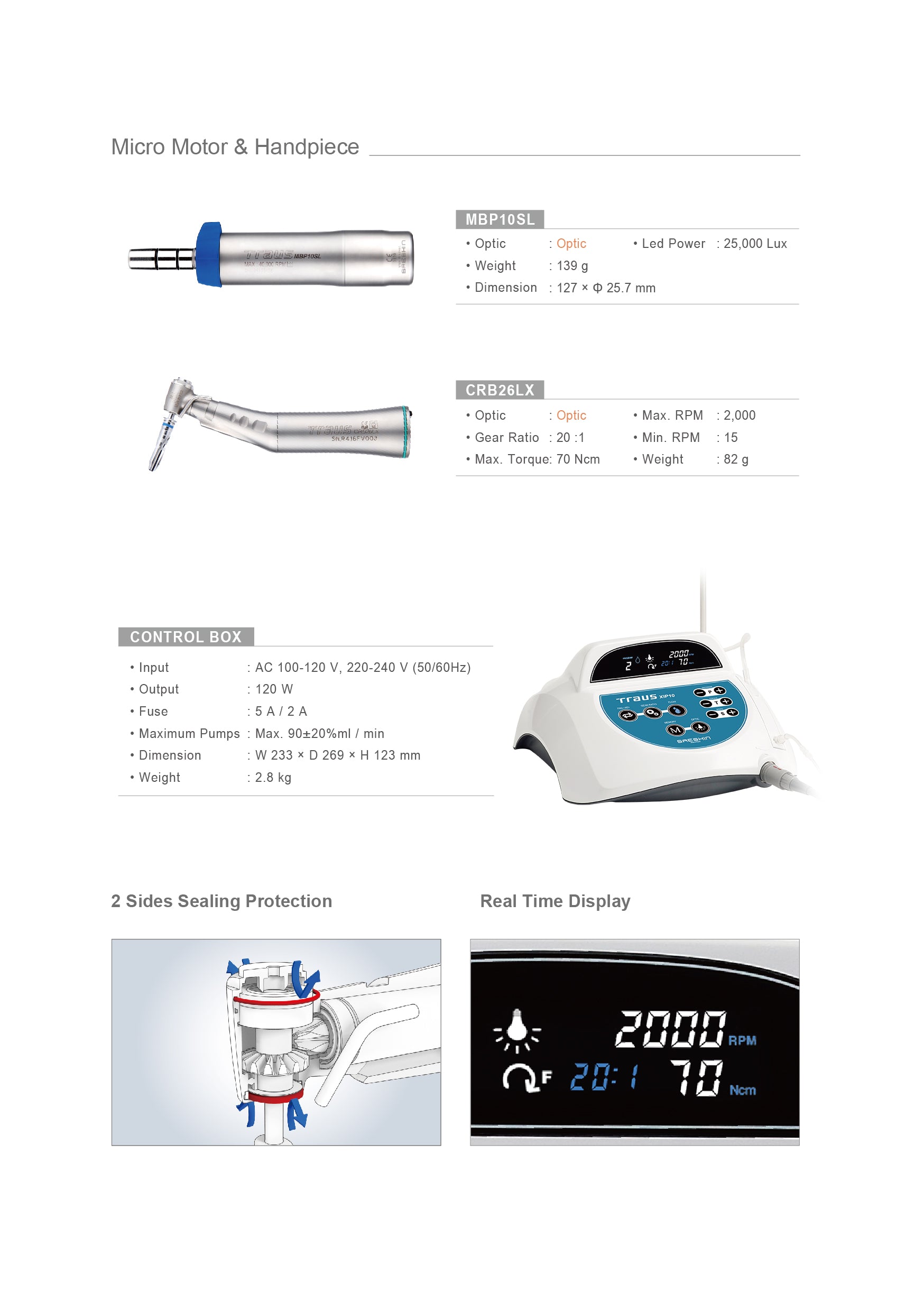 - Motor handpiece followed “ISO3964” for standard connection. (0~40K RPM)